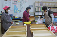 本来3時過ぎに白餅と合わせて袋詰めの予定であったが、予定より早く米屋さんが餅を持ってきてくれた。(というのも私たちの予定に合わせて、午前3時から準備をしてくださったらしいのです・・・感謝!)。