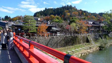 翌日は朝湯を楽しむ人、近所を散策する人などもいて朝食後8時に旅館を出発。高山市内観光を行う。行楽シーズンと有名な飛騨高山のため大変な人出である。思い思いに食事をすませ、滋賀県の紅葉で有名な永源寺へ。帰りのバスの中では市民劇場ツアーで恒例となった藤田さんのツアーにちなんだクイズで盛り上がり、道中は混んでたが、退屈せずに、予定通り16時前の到着となった。こちら永源寺も大変な人出である。見事な紅葉を楽しみ、京都インターの渋滞に巻き込まれつつ予定より1時間30分ほど遅れて鳴門に着いた。道中が長く少々疲れたが、楽しい二日間だった。市民劇場に入会するとこんな楽しい経験もできるのですね、ツアーの計画をしてくれた幹事さん、道中お世話してくれた幹事さんたちに感謝です。皆様、お疲れ様でした。