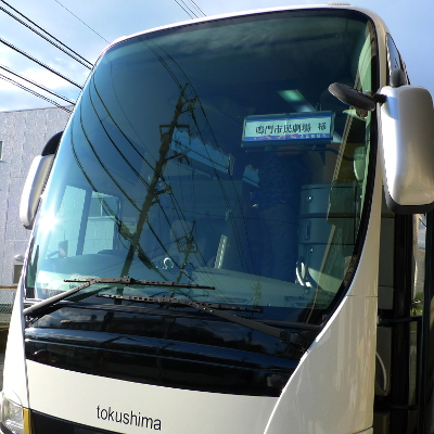 ツアー参加者総勢28名を乗せた金比羅タクシーの小型観光バスが鳴門を定刻の7時に出発。天候が心配されたがまずまずの空模様である。バスの中では天野さんの進行、篠崎さんの名調子による能登演劇堂の紹介や、参加者の自己紹介で観劇気分が盛り上がった。で昼食は徳光パーキングエリアに隣接するはくさん街道市場の予定だったが、行楽シーズンのため京都あたりで渋滞となり、演劇堂の開演時間が決まっているので、それぞれパーキングエリアの軽食やコンビニでの弁当で昼食をとり予定通り、能登演劇堂に到着。